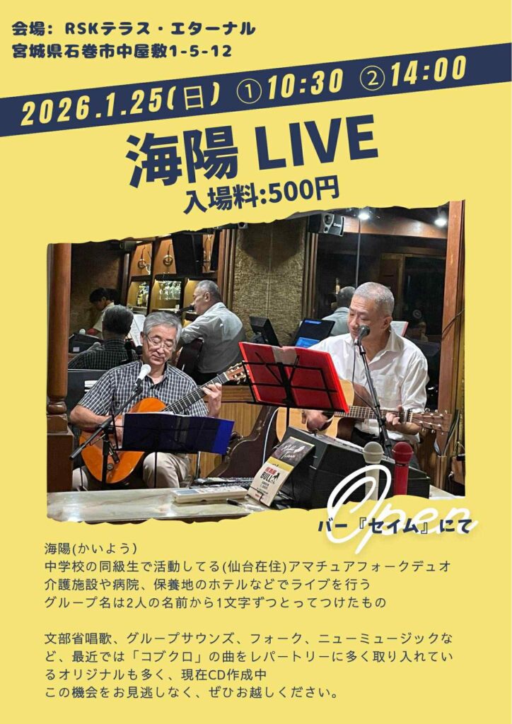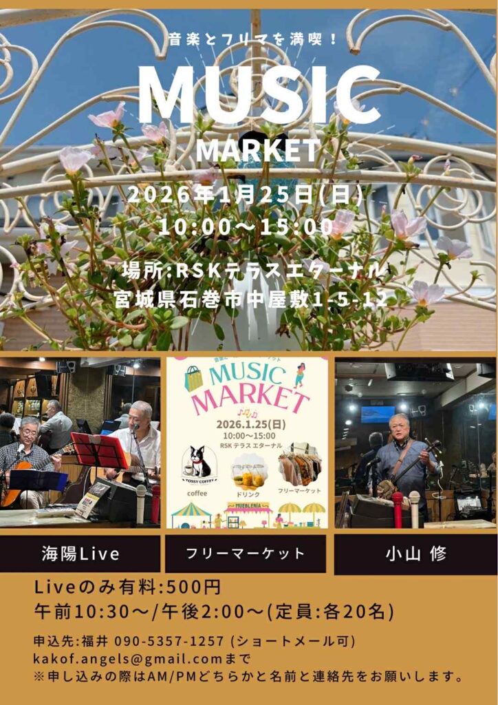 1月25日(日)にRSKテラスエターナルにて音楽とフリーマケットを開催します。